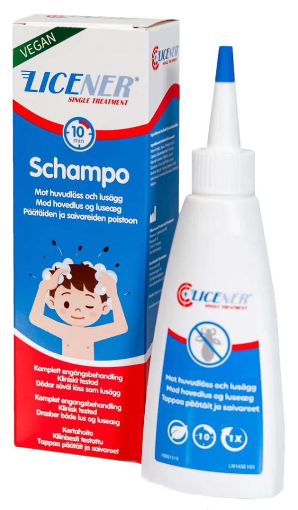 Täiden ja munien poistaminen vain yhdellä käsittelyllä on todistetusti 100 % tehokasta Licenerillä. 100 % luonnollisen sisältönsä, mukaan lukien Neem-uute, ansiosta shampoo toimii tukkimalla sekä aikuisten täiden että munista löytyvien niin sanottujen nymfien hengitystiet.